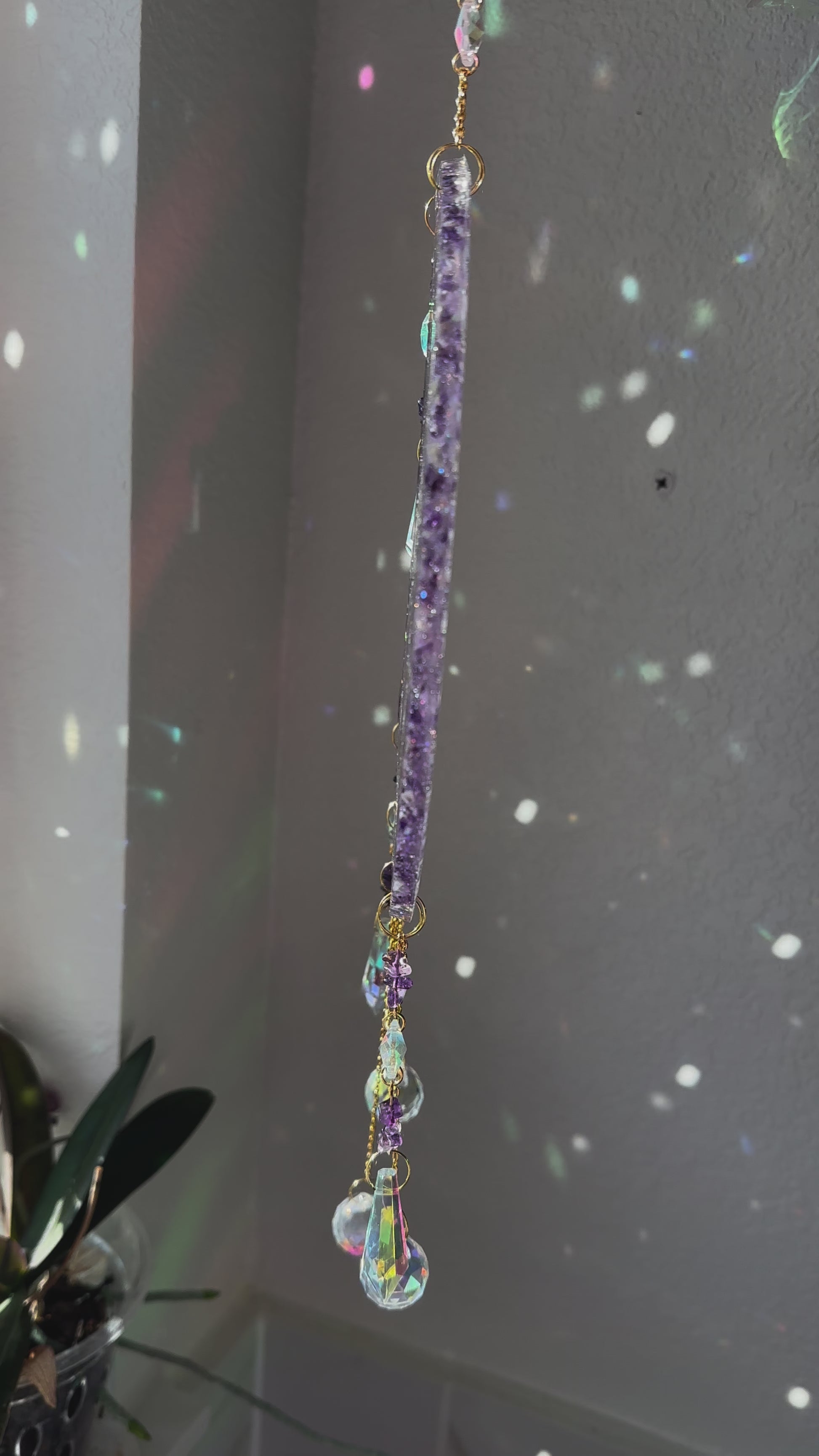 Amethyst Crysts Chip Crescent Moon Sun Catcher Wall Hang
