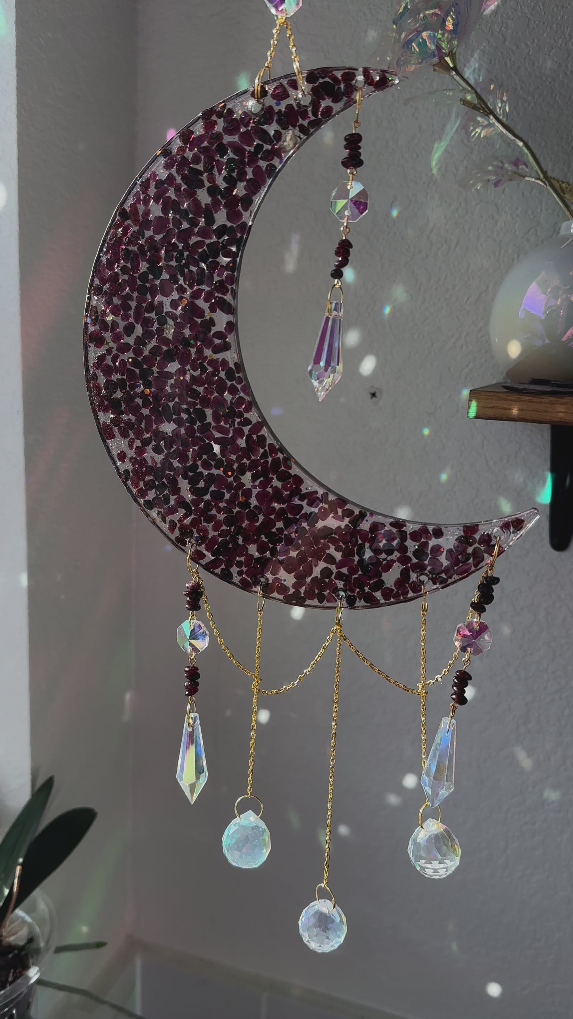 Garnet Chip Crescent Moon Sun Catcher Wall Hang