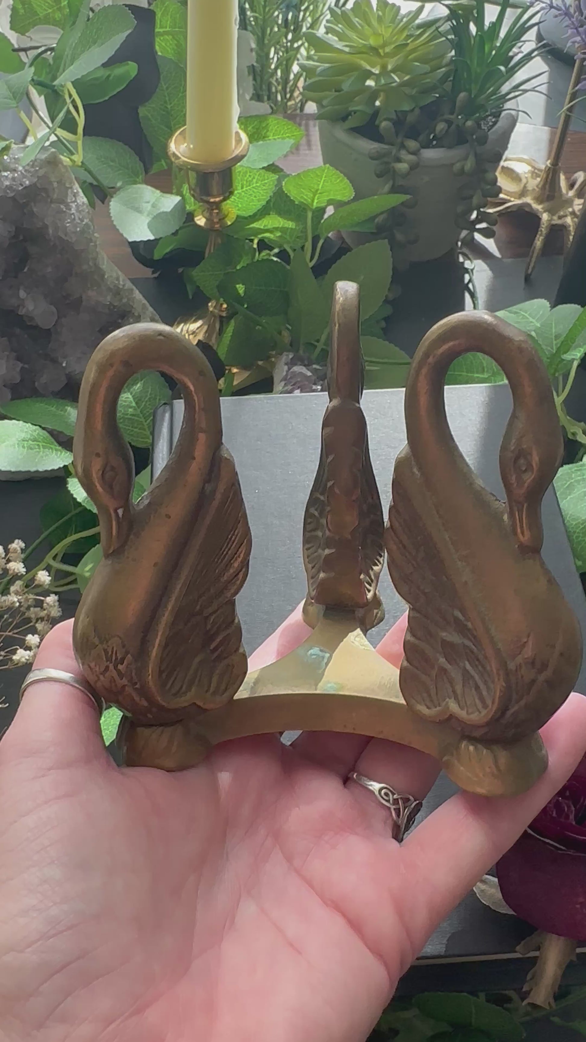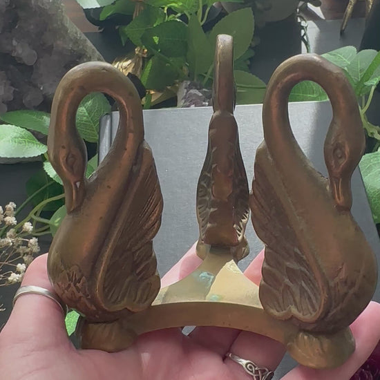 Vintage brass swan sphere holder